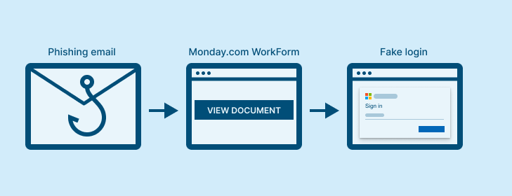 Monday WorkForms is just the latest example. We’ve also seen attackers abuse platforms like Google Drawings, Confluence, Dropbox, OneDrive, Scribe, and other trusted SaaS tools to host intermediary pages between email and phishing forms. These platforms are easy to weaponize and nearly impossible to block outright without disrupting legitimate business use.