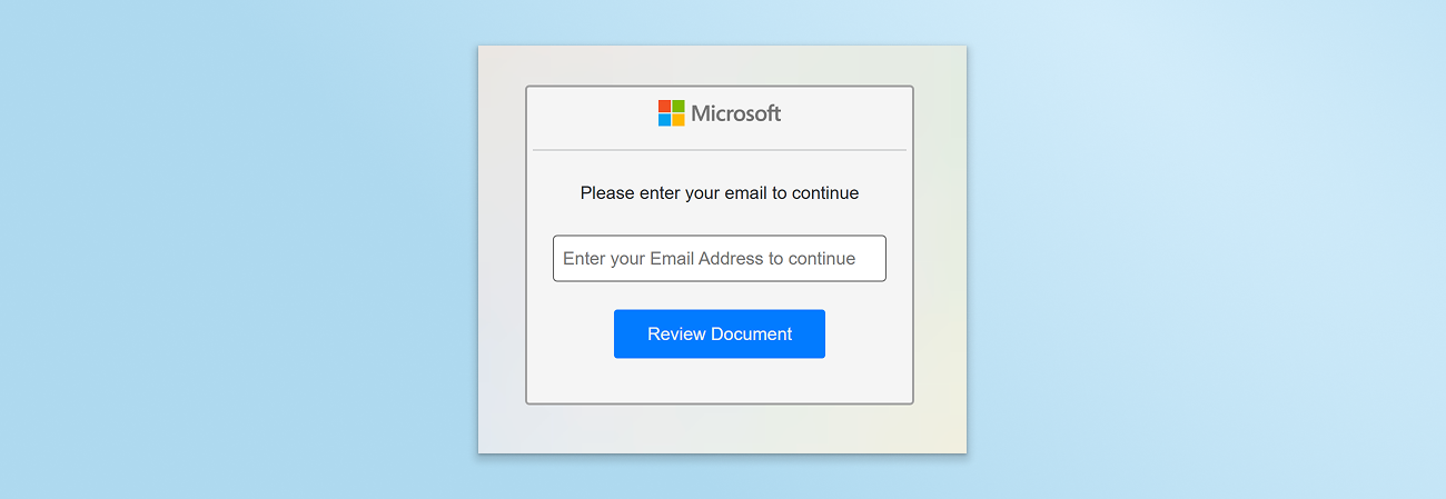 The next call to action encourages the employee to provide their Microsoft business email address, ultimately attempting to steal work credentials.